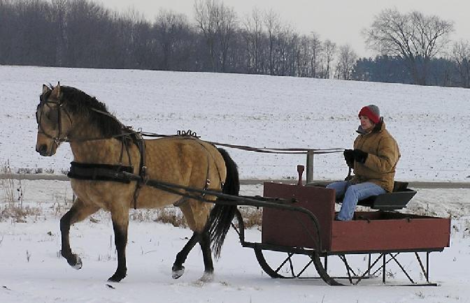 buckskin stallion owned and driven by Charlene Cook, Goshen, IN.