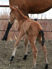 legs; their black leg points appear at foal shed. Brown based foals often have fairly extensive black on their legs even before the foal shed, however. We know this filly is