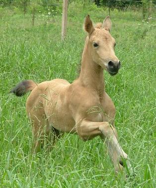 he is buckskin because his sire is a perlino. Third picture at age 4 months, with the foal coat shed out. Photos by Jonesy's breeder, Janine Welsh.