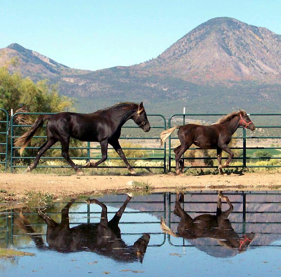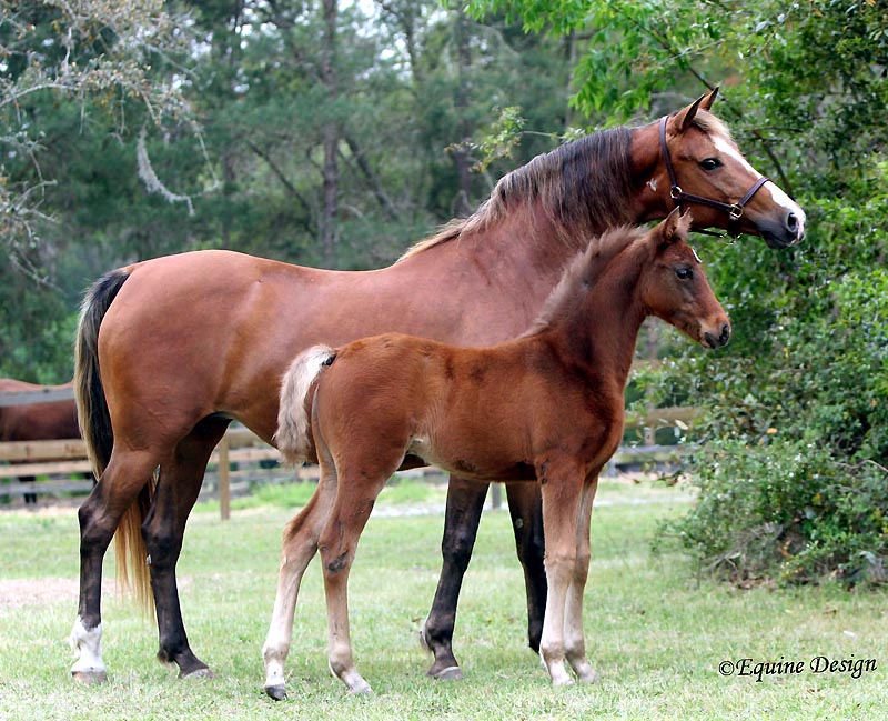 ERBER'S APRIL JOY (Erber's CF Onyx x Pegasus Prime Joy), 1998 bay silver mare, with her 2008 bay silver daughter