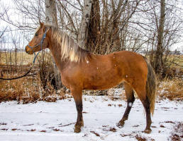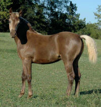2004 dark bay or brown silver dapple colt owned by Tamara Dirrim.