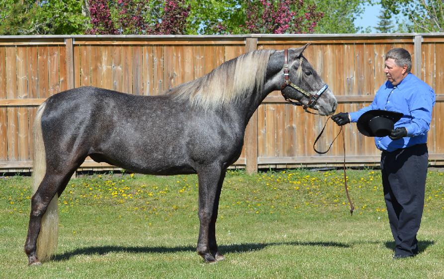 In the middle picture he is shown with his 2012 paternal half brother, the black silver Schaenzer's Silver Fox. The dun dorsal can be clearly seen.