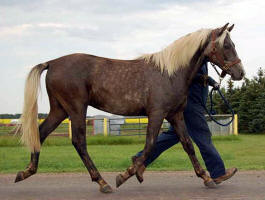 The silver gene dilutes any black hair on the horse to shades of chocolate through slate gray, sometimes with dappling, and has an added lightening effect on the mane and tail, turning them silvery gray, straw colored, or even platinum. Because