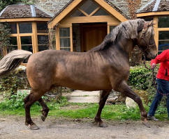 Hamars Horses, UK. Like his mateernal grandsire RCK Tres Oros, Talsiman is a very dark bay/brown dun; add in the silver gene and lots of wild dun factor, and you have this very striking gent! Photos courtesy of Helen Prentice.