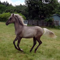 silver grulla gelding owned by Ilse Limpens. "Linus" was the first dun + silver dilute in the breed.