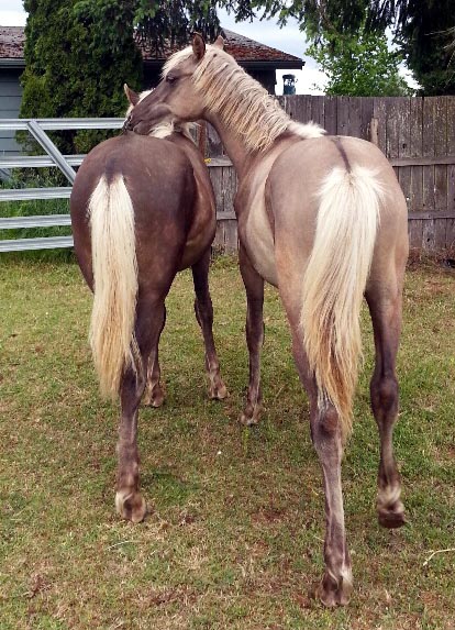 Frosty Dawn) and the chestnut (carrying silver) Morgan mare